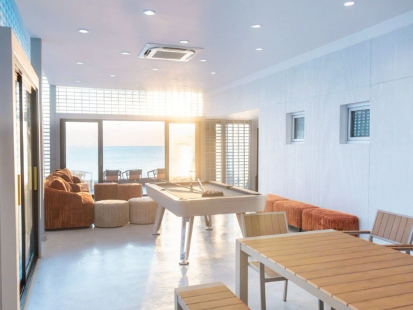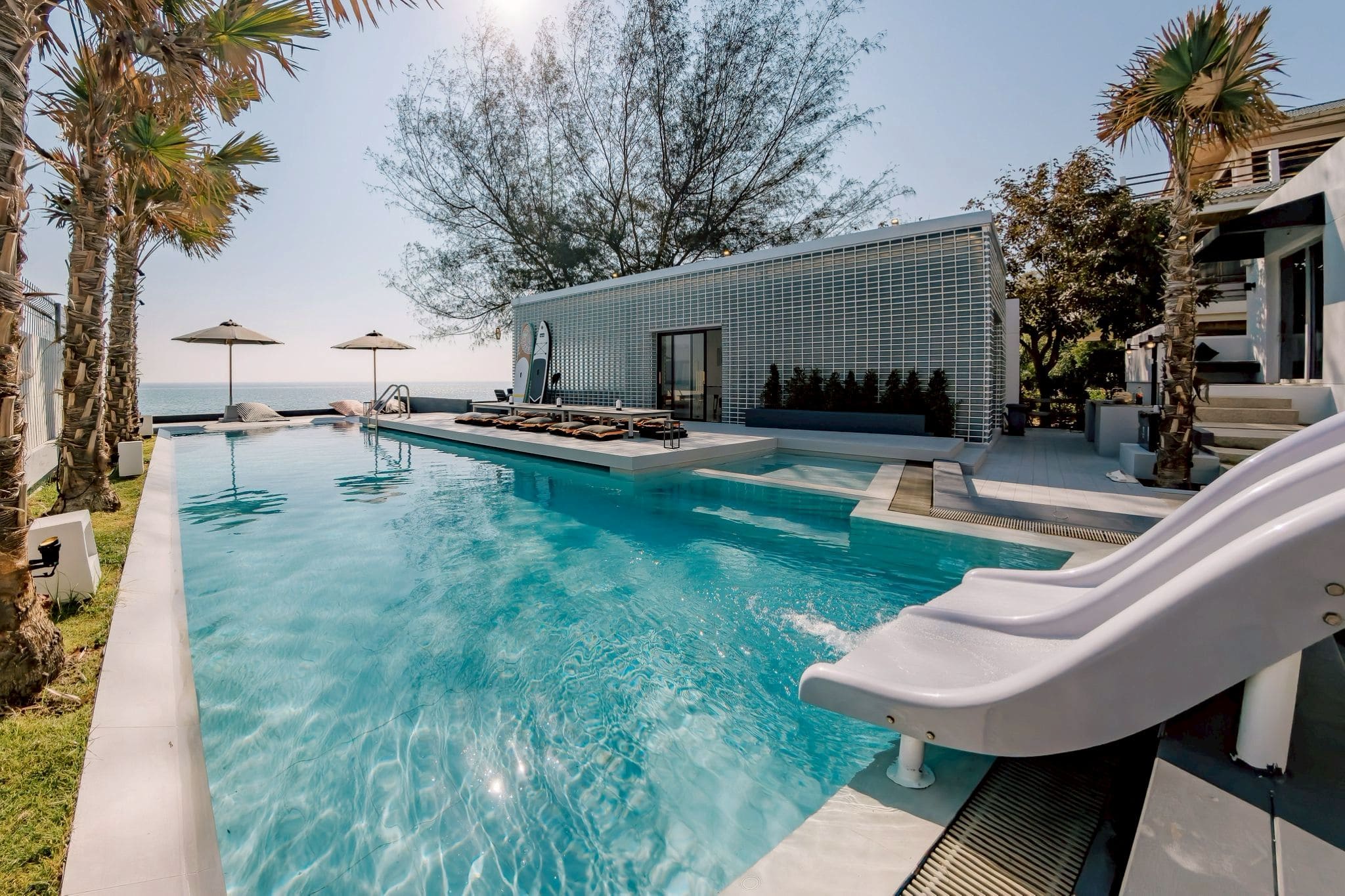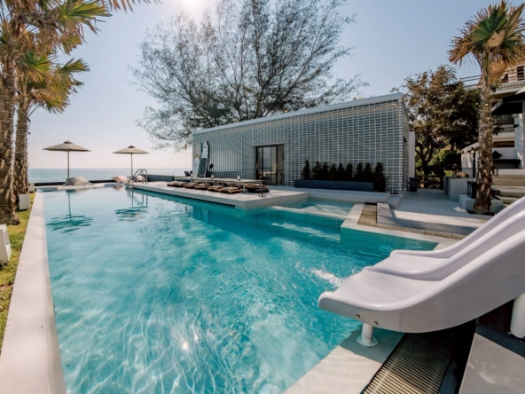พูลวิลล่าติดทะเลหัวหิน สไตล์มินิมอลหลังใหญ่ พื้นที่กว้างขวาง มีมุมถ่ายรูปมากมาย พร้อมโซนปาร์ตี้ปิ้งย่างติดทะเล มาพร้อมสระว่ายน้ำส่วนตัว และสไลเดอร์ ห้องนั่งเล่นชมวิวทะเล ต้อนรับซัมเมอร์สำหรับครอบครัวใหญ่ กรุ๊ปบริษัท ปาร์ตี้องค์กร