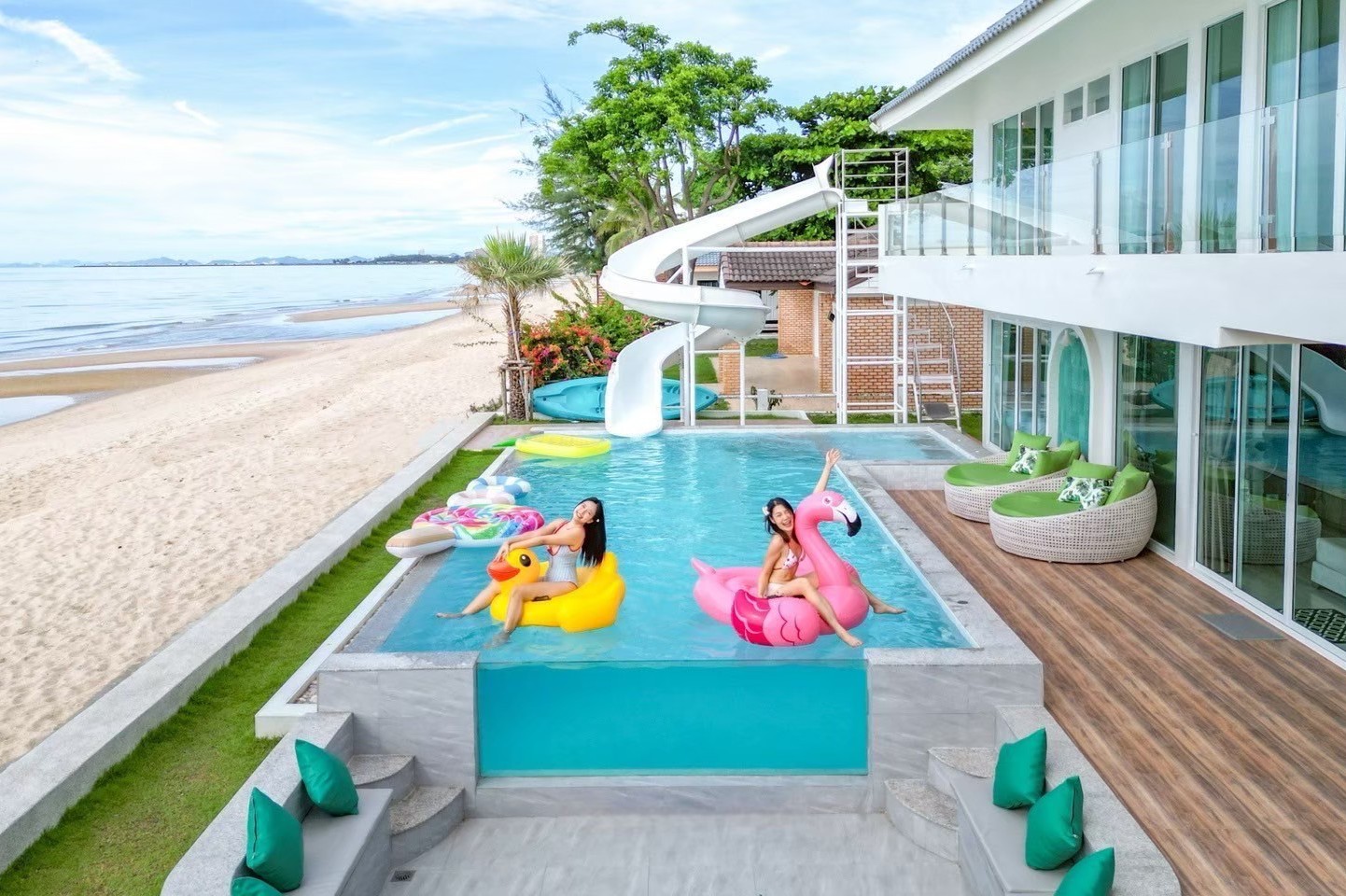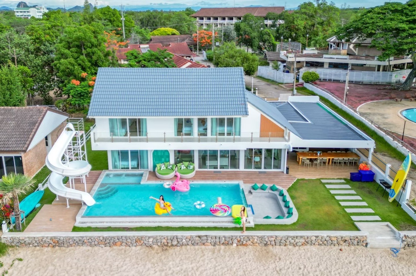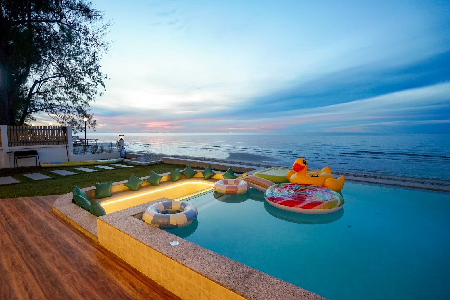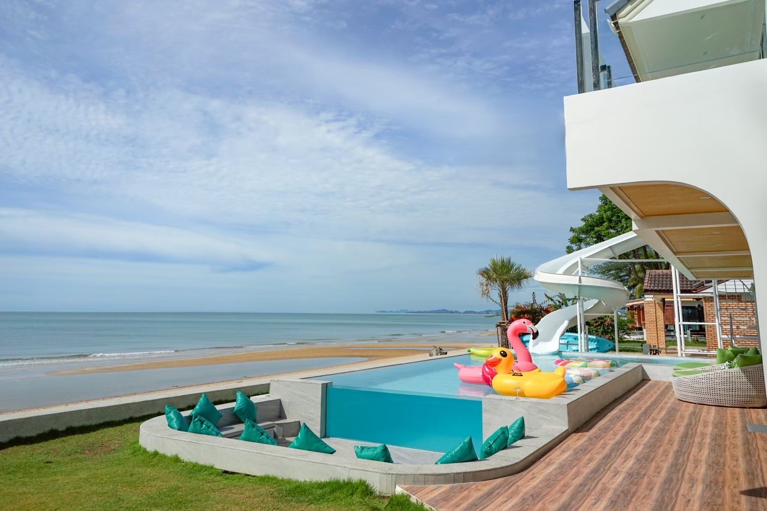 บ้านพักเปิดใหม่ติดทะเลชายหาดชะอำ หาดที่บ้านพักเป็นทรายขาว ไม่มีโขดหิน น้ำทะเลใสมาก สามารถเล่นกิจกรรมได้ มีสไลเดอร์ เรือคายัค และ Sup board บริการ