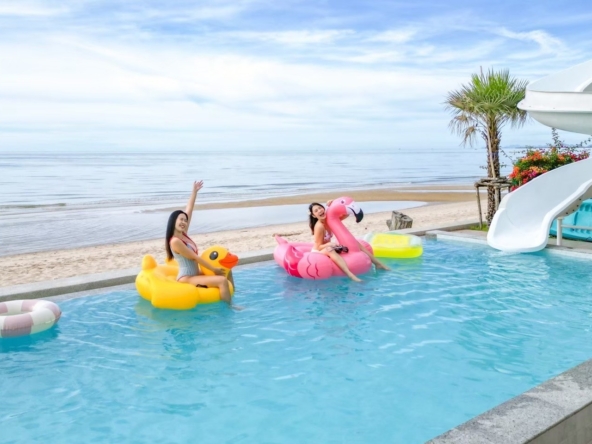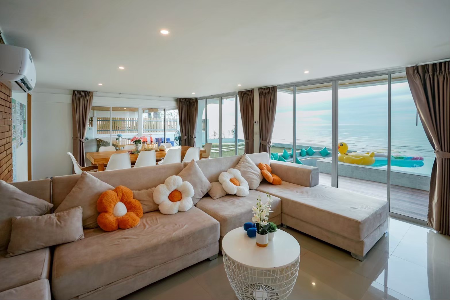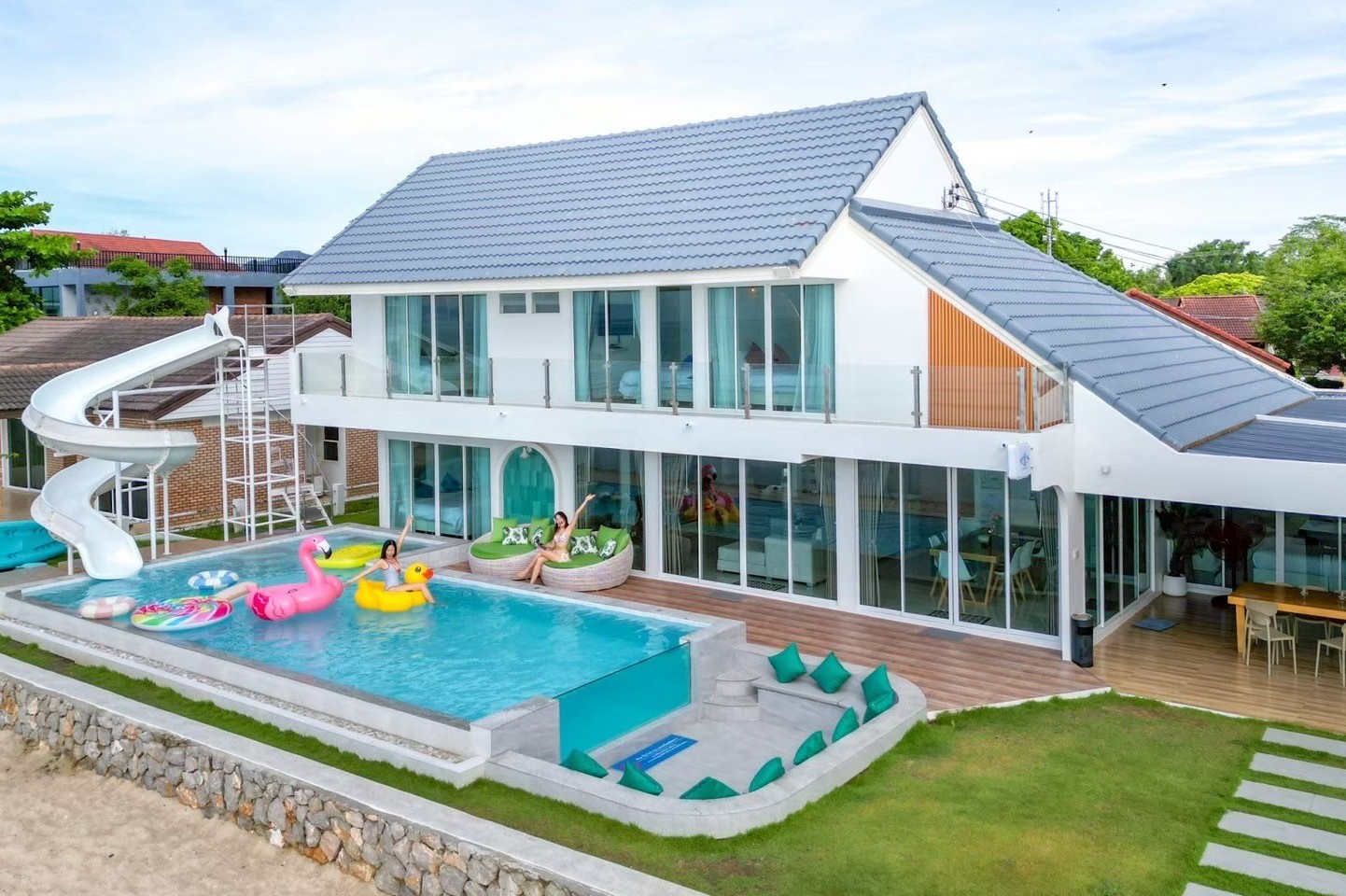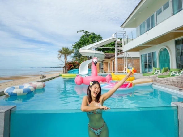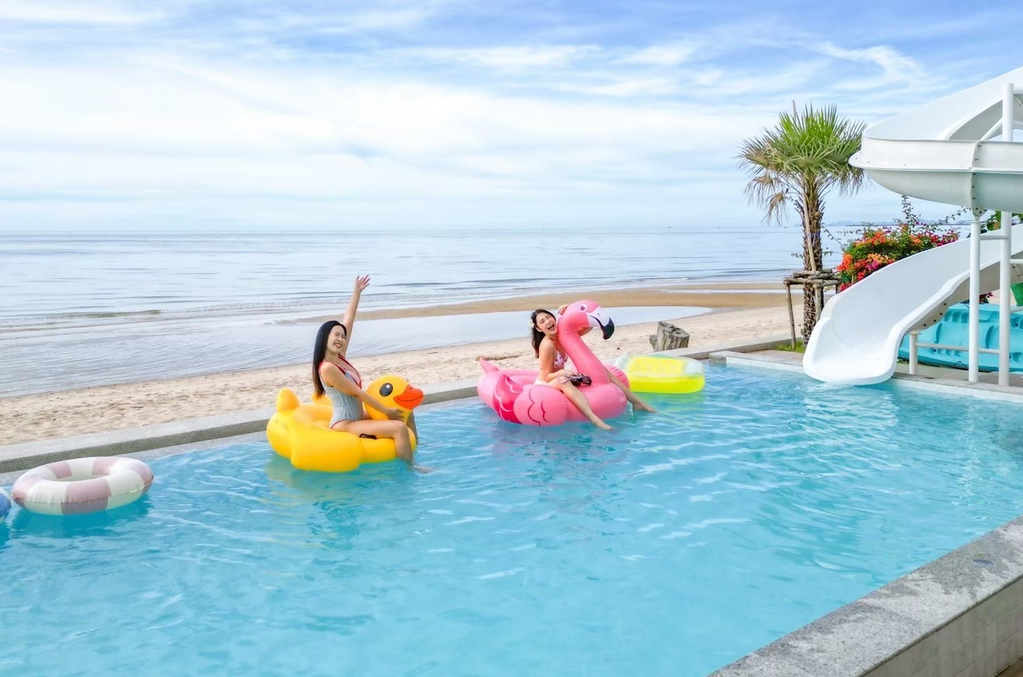 บ้านพักเปิดใหม่ติดทะเลชายหาดชะอำ หาดที่บ้านพักเป็นทรายขาว ไม่มีโขดหิน น้ำทะเลใสมาก สามารถเล่นกิจกรรมได้ มีสไลเดอร์ เรือคายัค และ Sup board บริการ