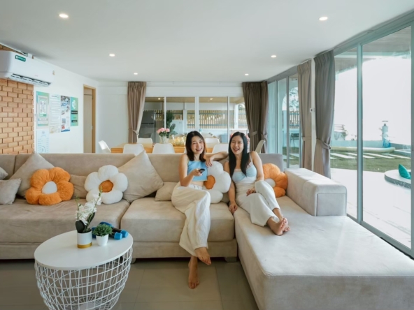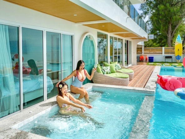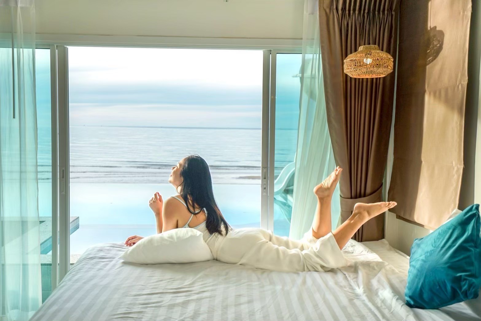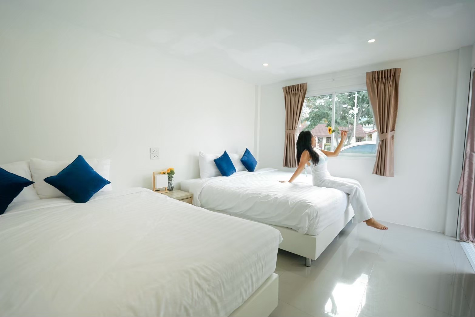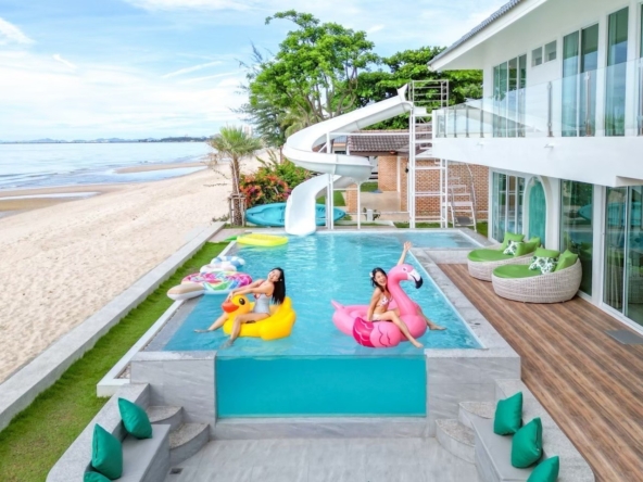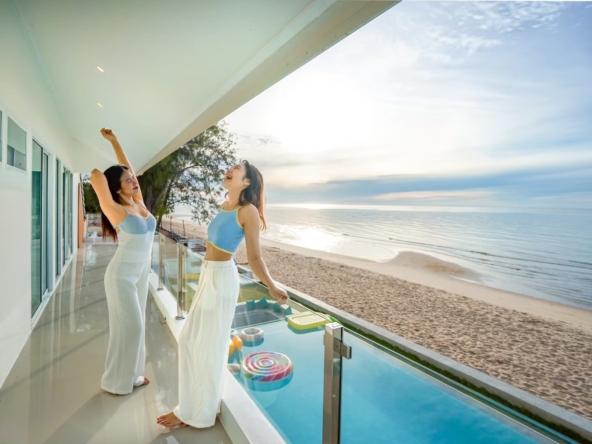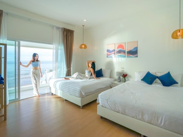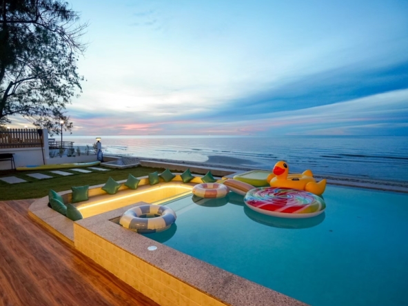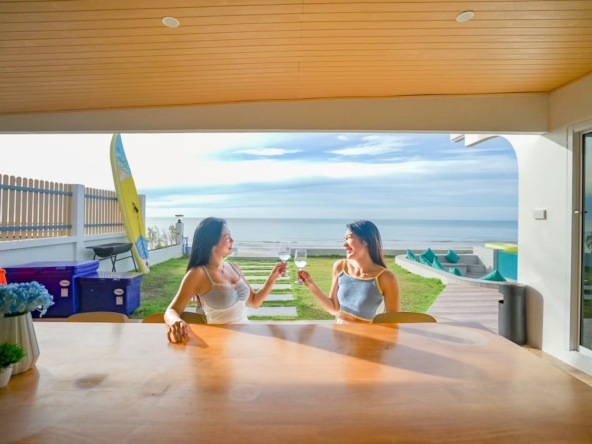 บ้านพักเปิดใหม่ติดทะเลชายหาดชะอำ หาดที่บ้านพักเป็นทรายขาว ไม่มีโขดหิน น้ำทะเลใสมาก สามารถเล่นกิจกรรมได้ มีสไลเดอร์ เรือคายัค และ Sup board บริการ