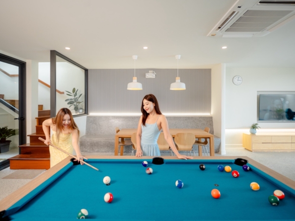 • + มีห้องน้ำทั้งในส่วน indoor living และส่วน outdoor ริมสระ สะดวกสบาย