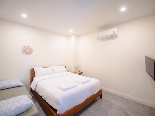 • – Room 2 : Queen size 1 เตียง และ Single bed 1 เตียง สำหรับ 3 ท่าน