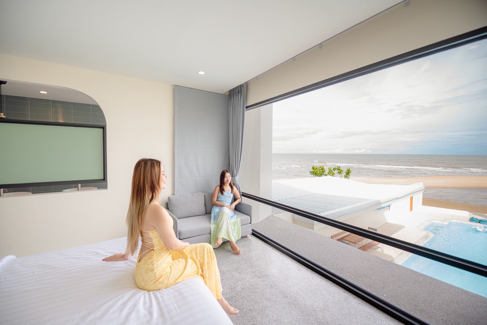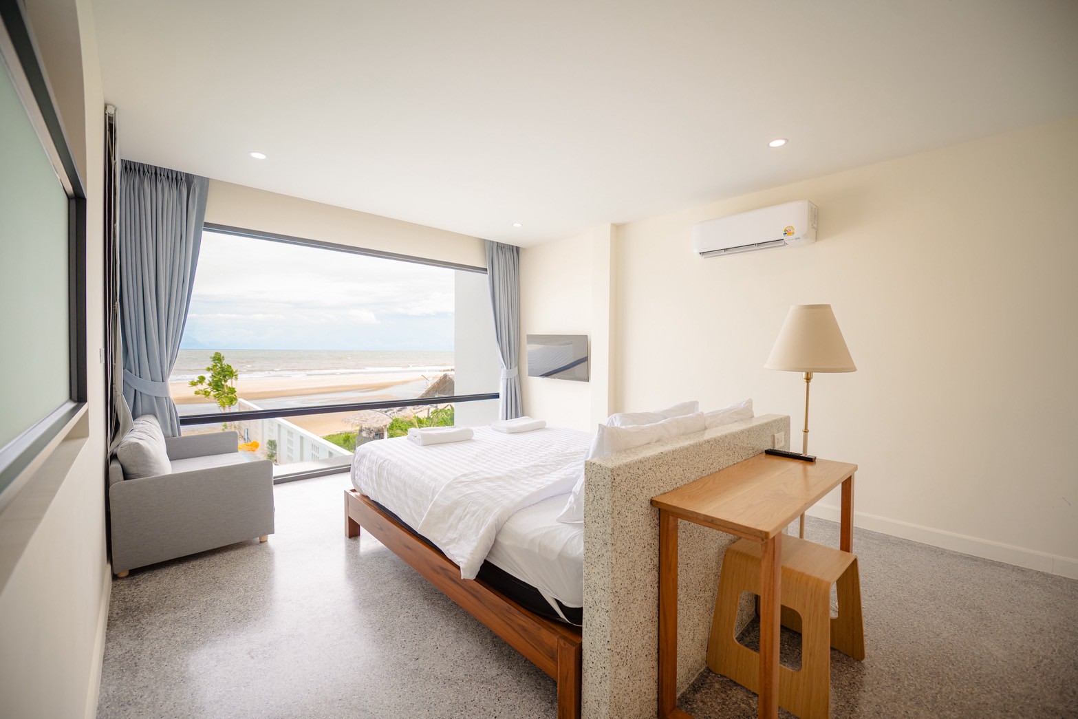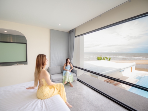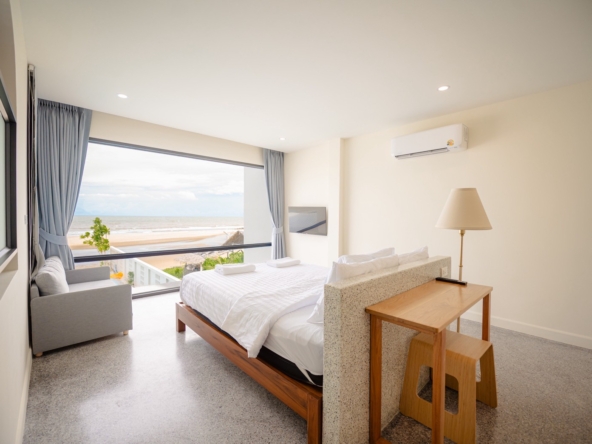 • – Room 4 : Queen size 1 เตียง และ Sofa bed 1 เตียง สำหรับ 3 ท่าน พร้อมอ่างอาบน้ำชมวิวทะเล