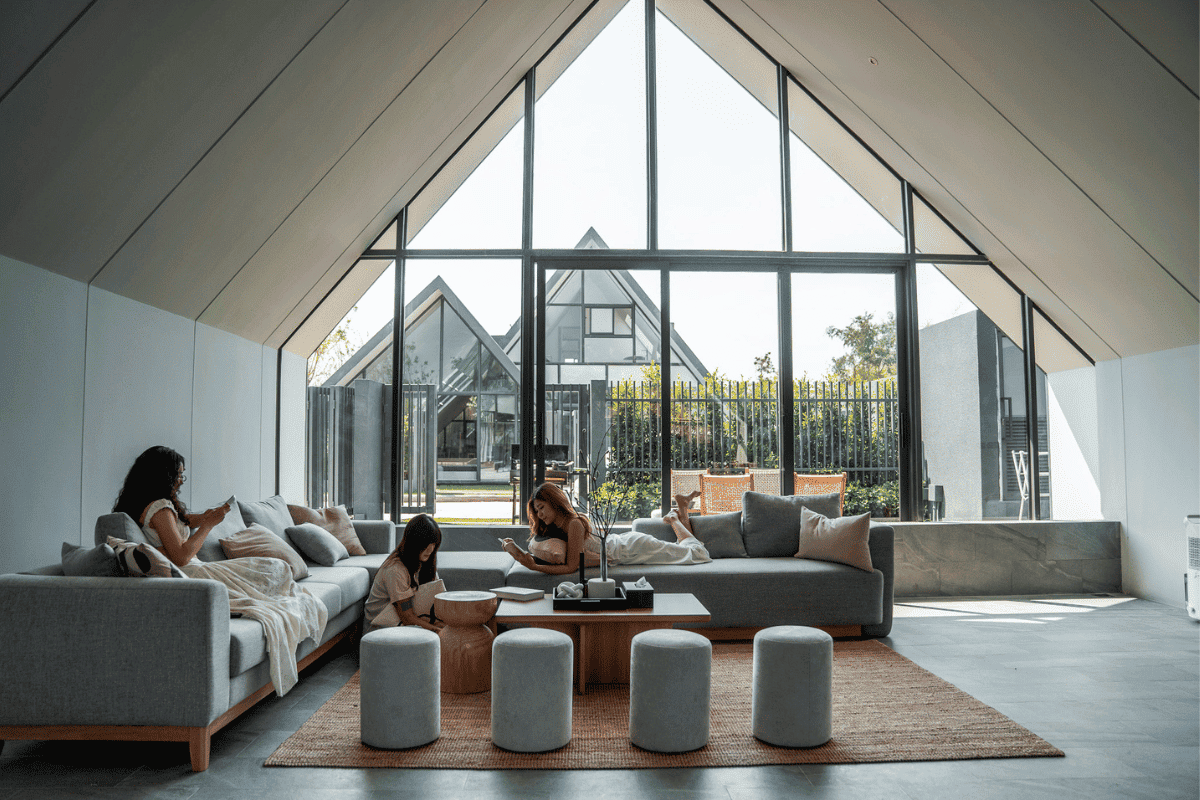 • ✅ ห้องนั่งเล่น double space สูง 6 เมตร