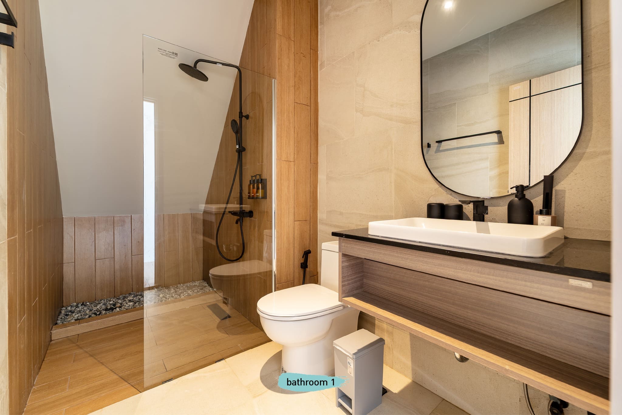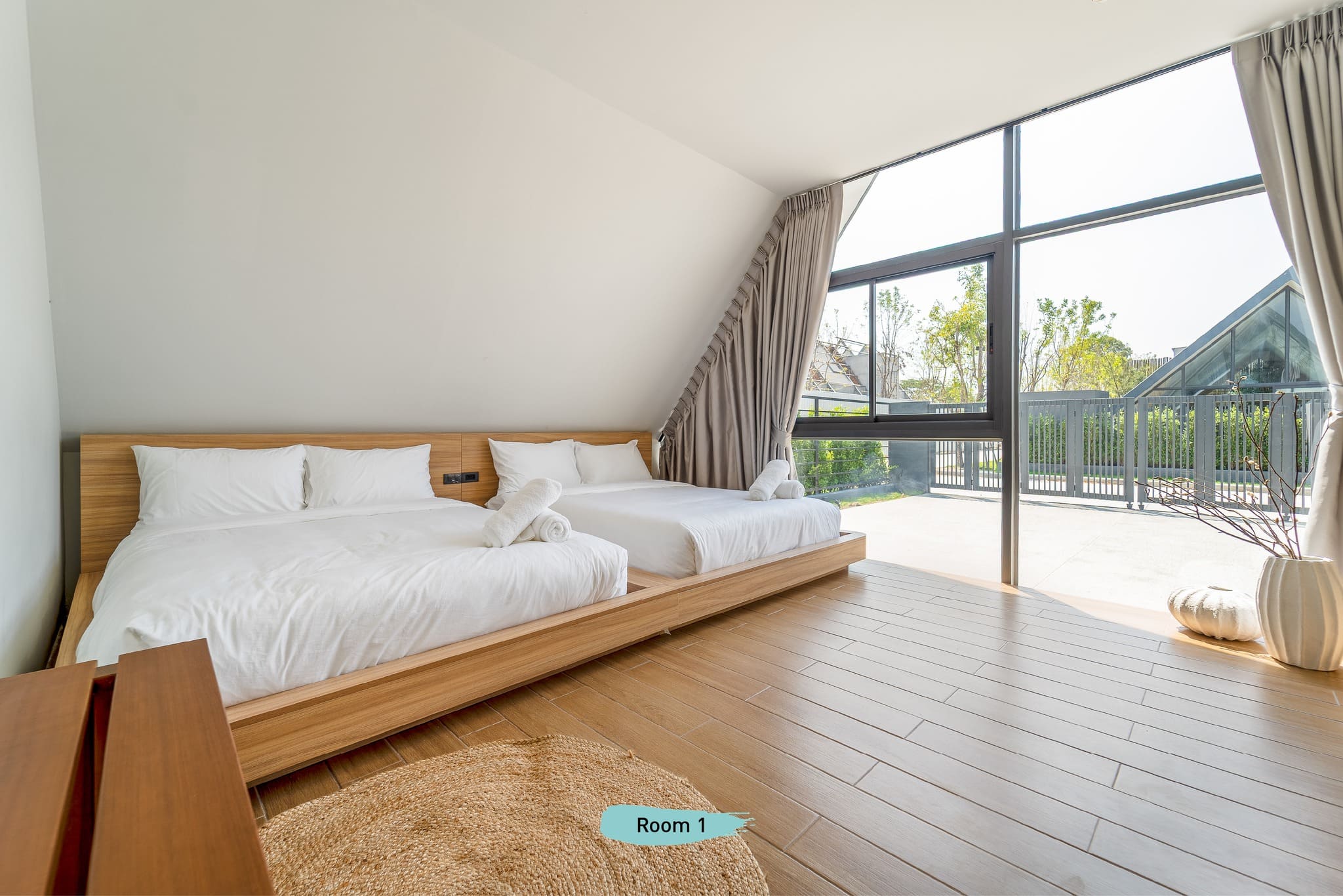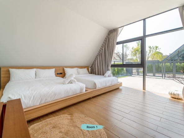 • 🛏️ห้องนอนที่ 1 (ชั้น 1) : 5 ฟุต 2 เตียง ห้องน้ำในตัว (ห้องนอนที่ 1 มีประตูเปิดคอนเนคกับห้องนอนที่ 2 )