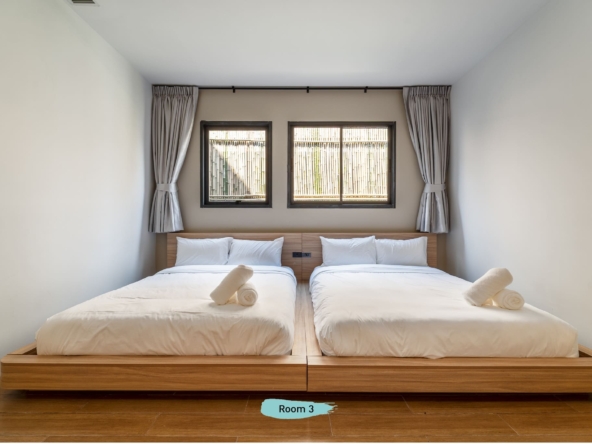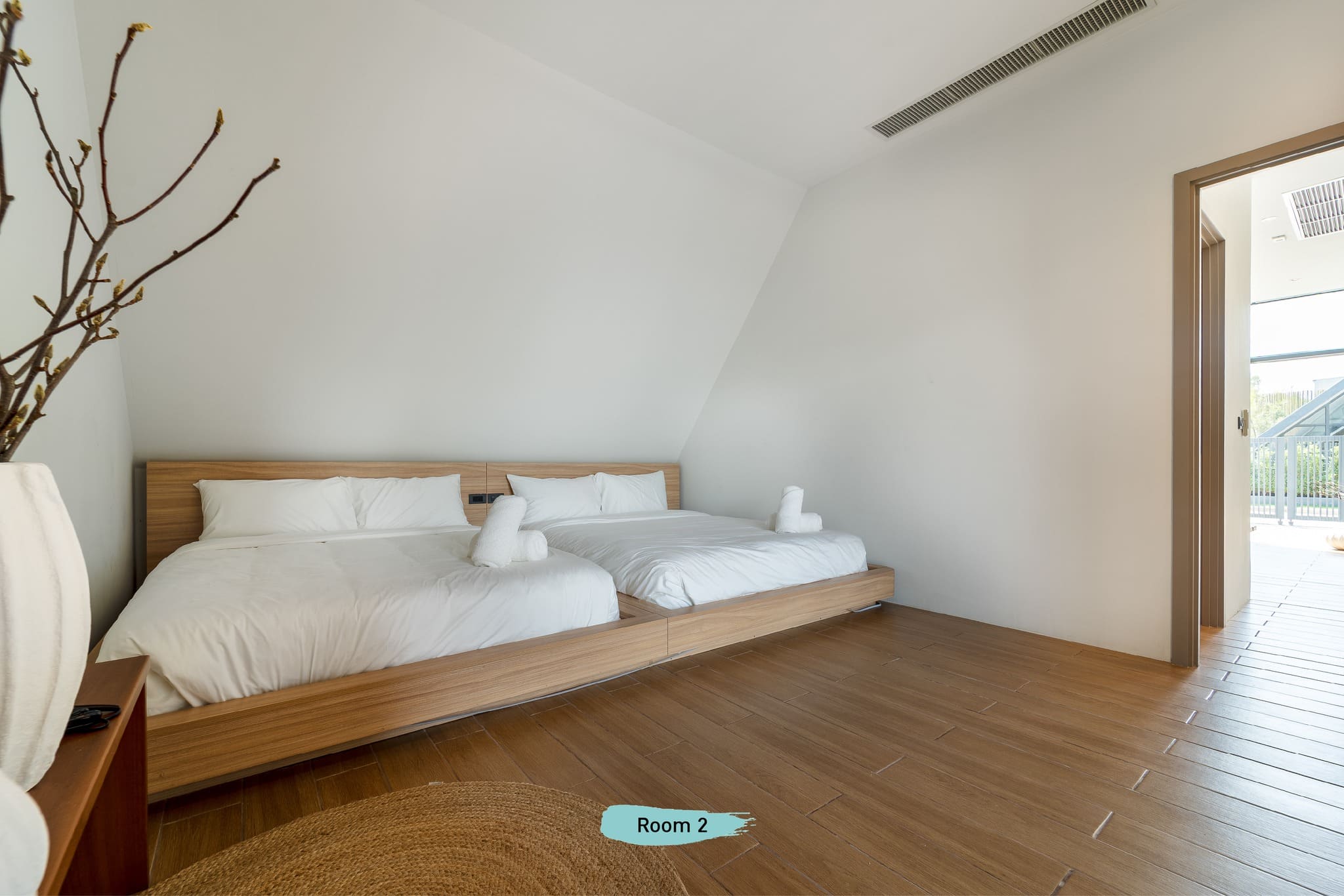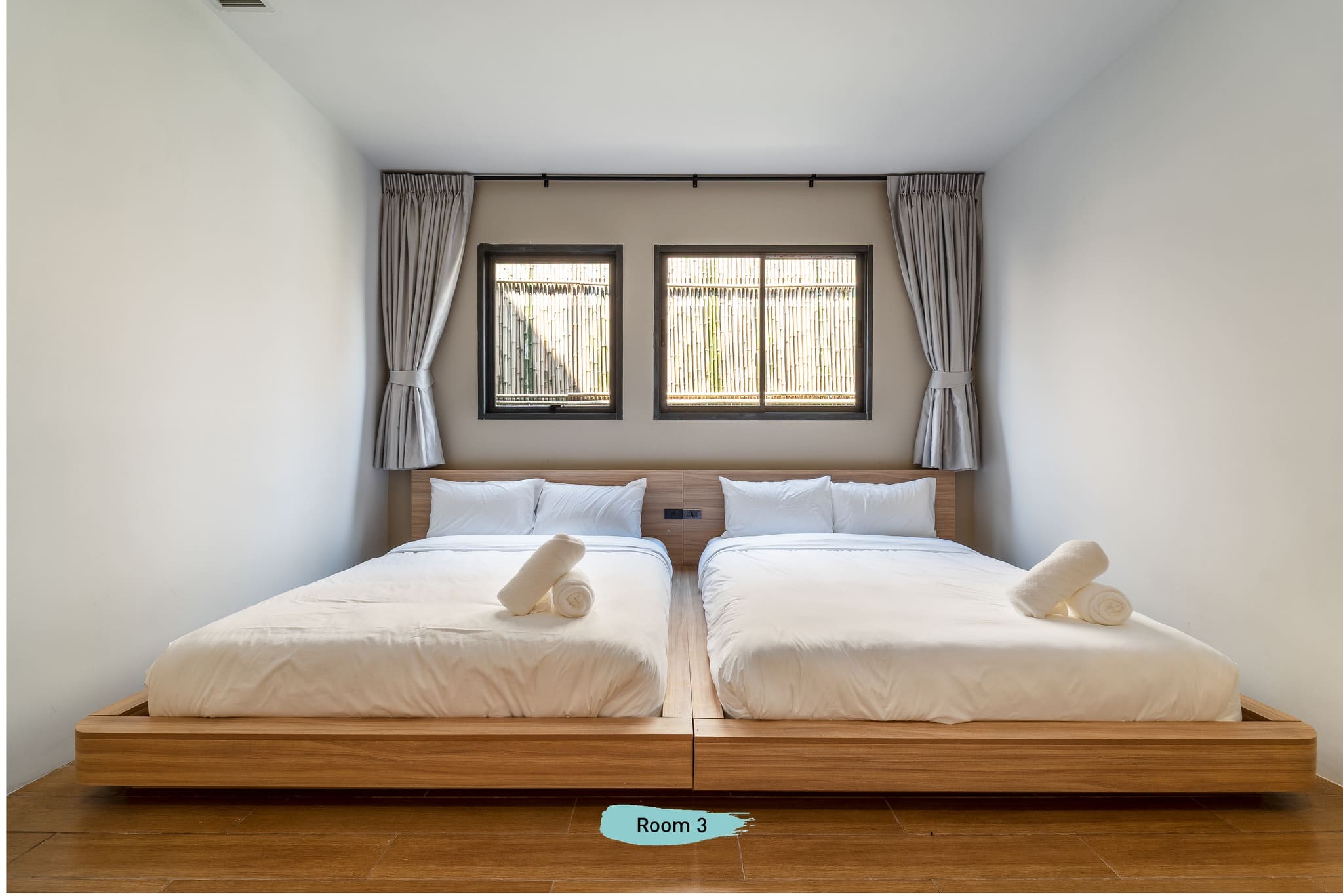 • 🛏️ห้องนอนที่ 2 (ชั้น 1) : 5 ฟุต 2 เตียง ห้องน้ำจะเปิดได้จากในตัวห้องนอนและจากส่วนกลาง