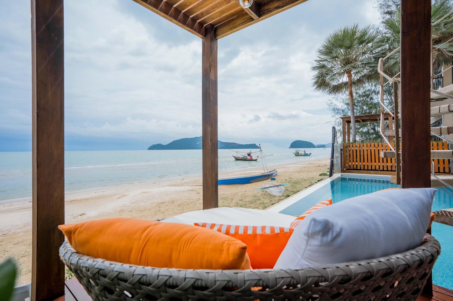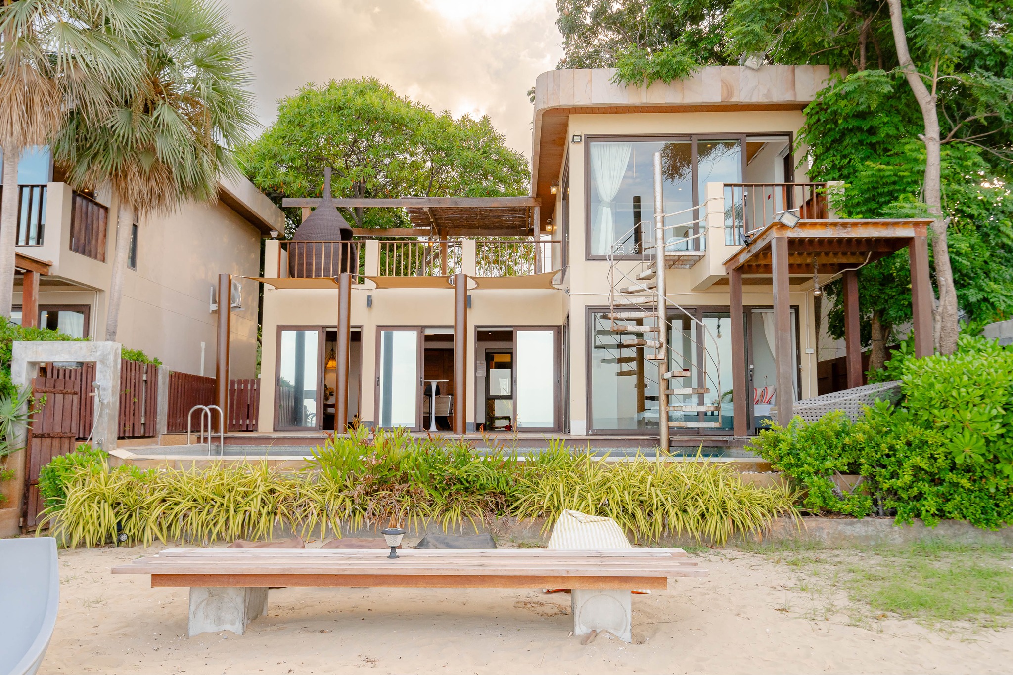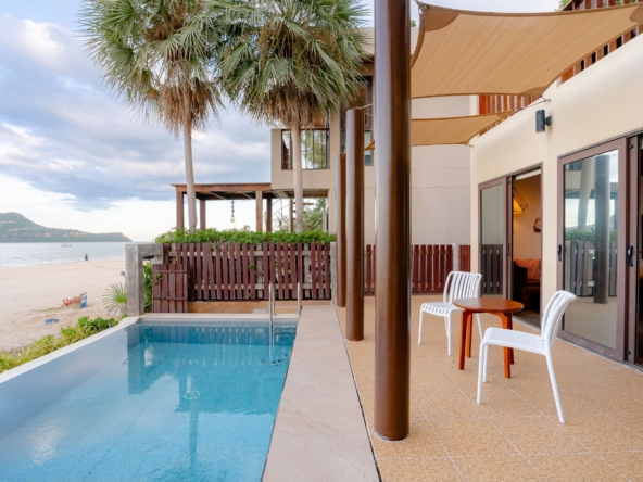 บ้านสวยสุดหรูติดหาดส่วนตัว 2 ห้องนอน 3 ห้องน้ำ สระว่ายน้ำส่วนตัวติดชายหาด สามร้อยยอด วิวทะเล 180 องศา สามารถเปิดรวมกันได้ 2 หลัง ถึง 4 ห้องนอน 6 ห้องน้ำ