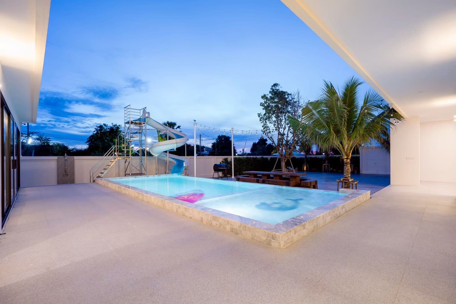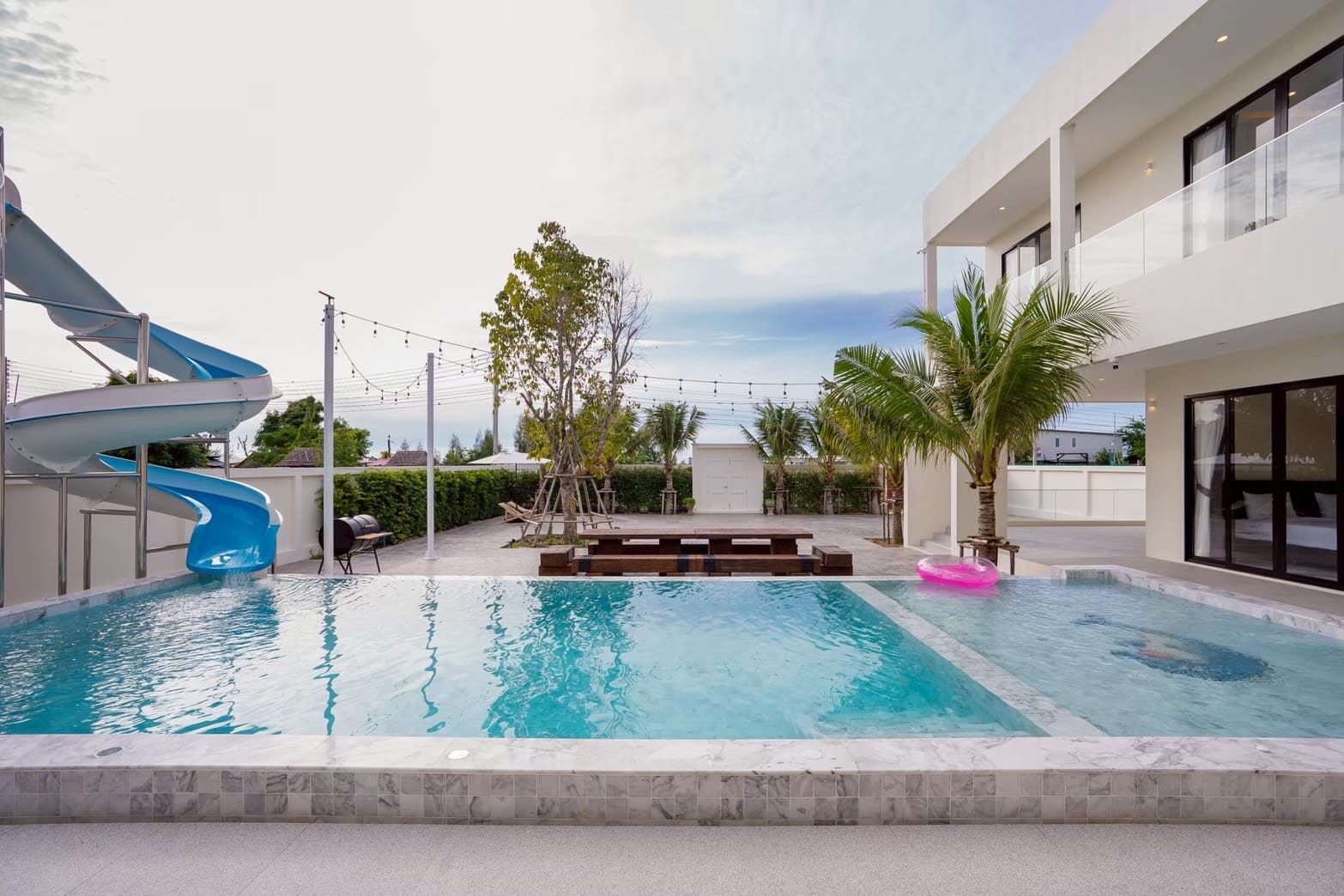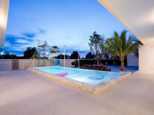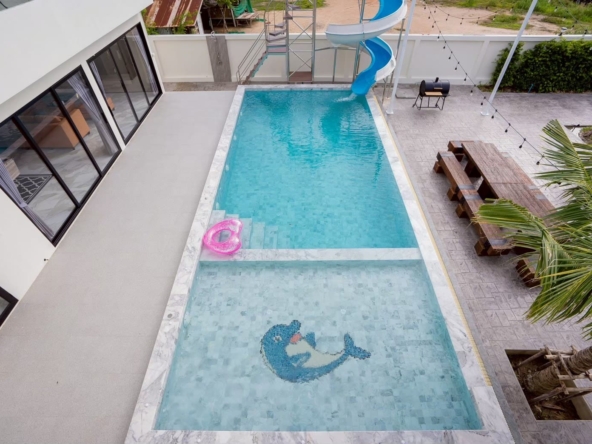 • 🏊‍♂️ สระว่ายน้ำขนาด 5*12 เมตร สไลเดอร์ยาว 13 เมตร พร้อมหัวพ่นจากุชชี่