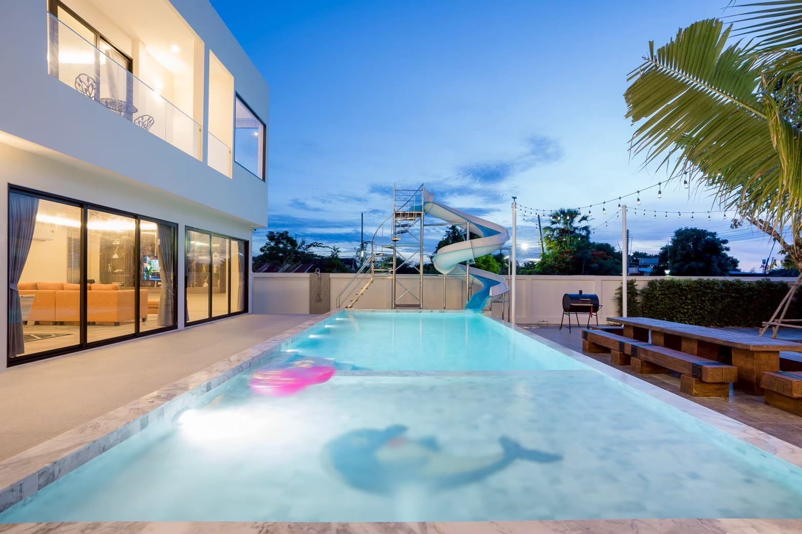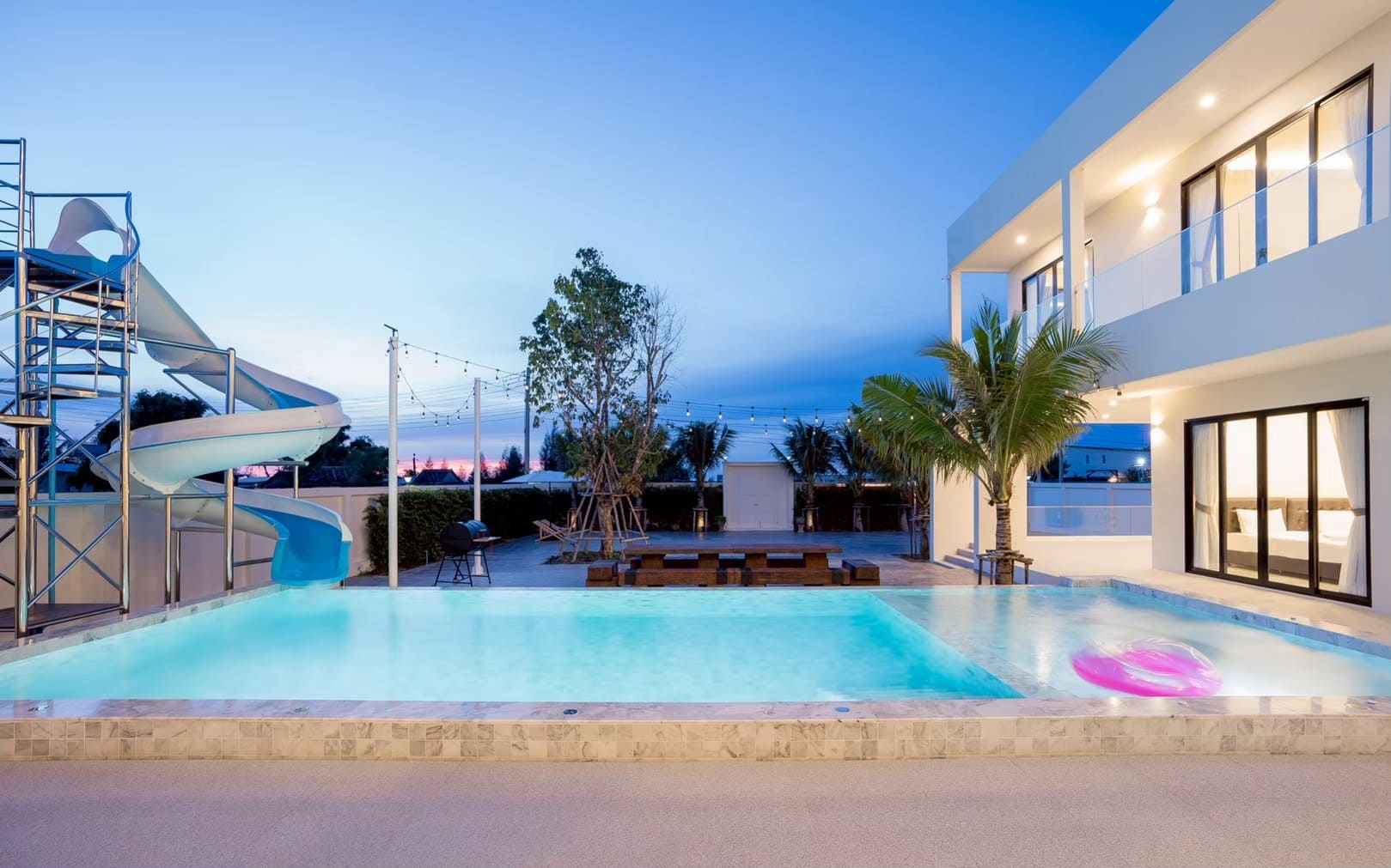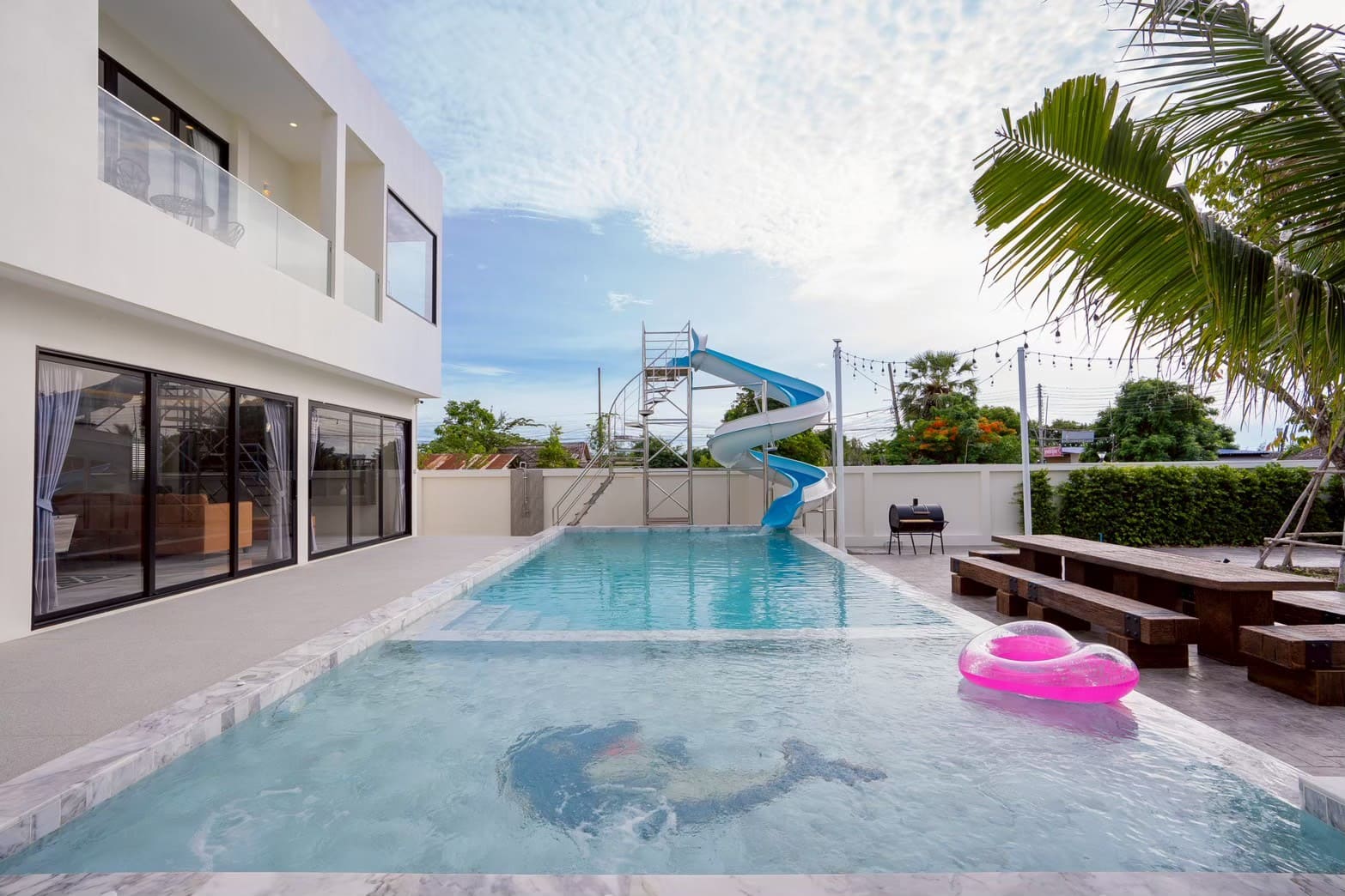 • 🏊‍♂️ สระว่ายน้ำขนาด 5*12 เมตร สไลเดอร์ยาว 13 เมตร พร้อมหัวพ่นจากุชชี่