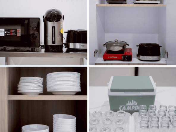 • 🧑🏻‍🍳 อุปกรณ์ทำครัวครบครัน + เตาแก๊สแบบฝัง พร้อมตัวดูดควัน
