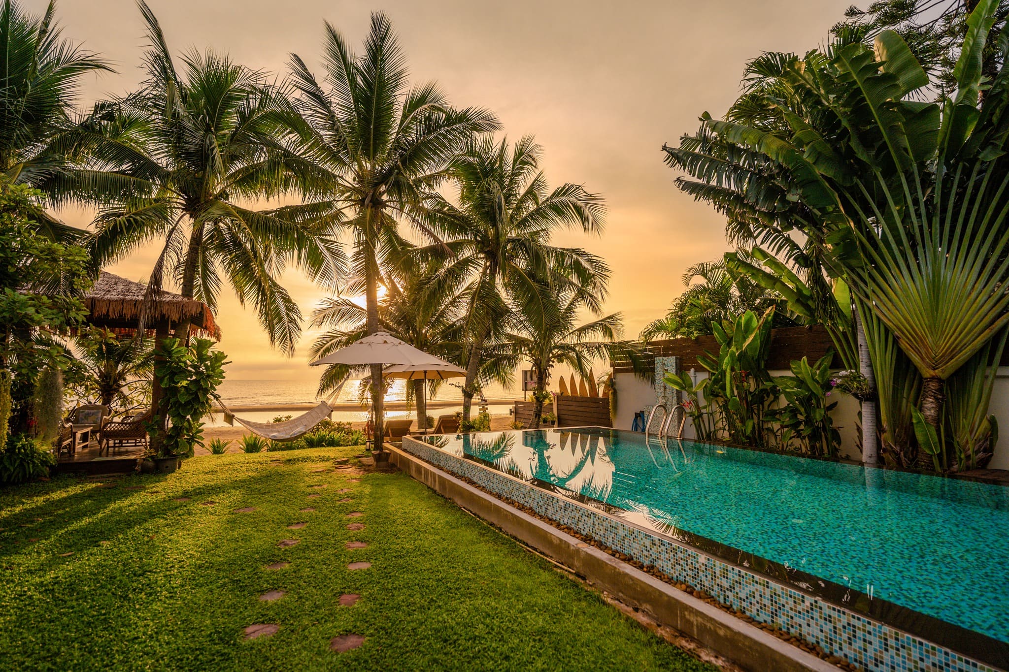 บ้านพักส่วนตัวติดทะเล หาดยาวติดทะเลเขากะโหลก วิวภูเขาและทะเลล้อมและสระน้ำอินฟินิตี้ เงียบสงบเหมาะแก่การพักผ่อนกับครอบครัวและกลุ่มเพื่อน