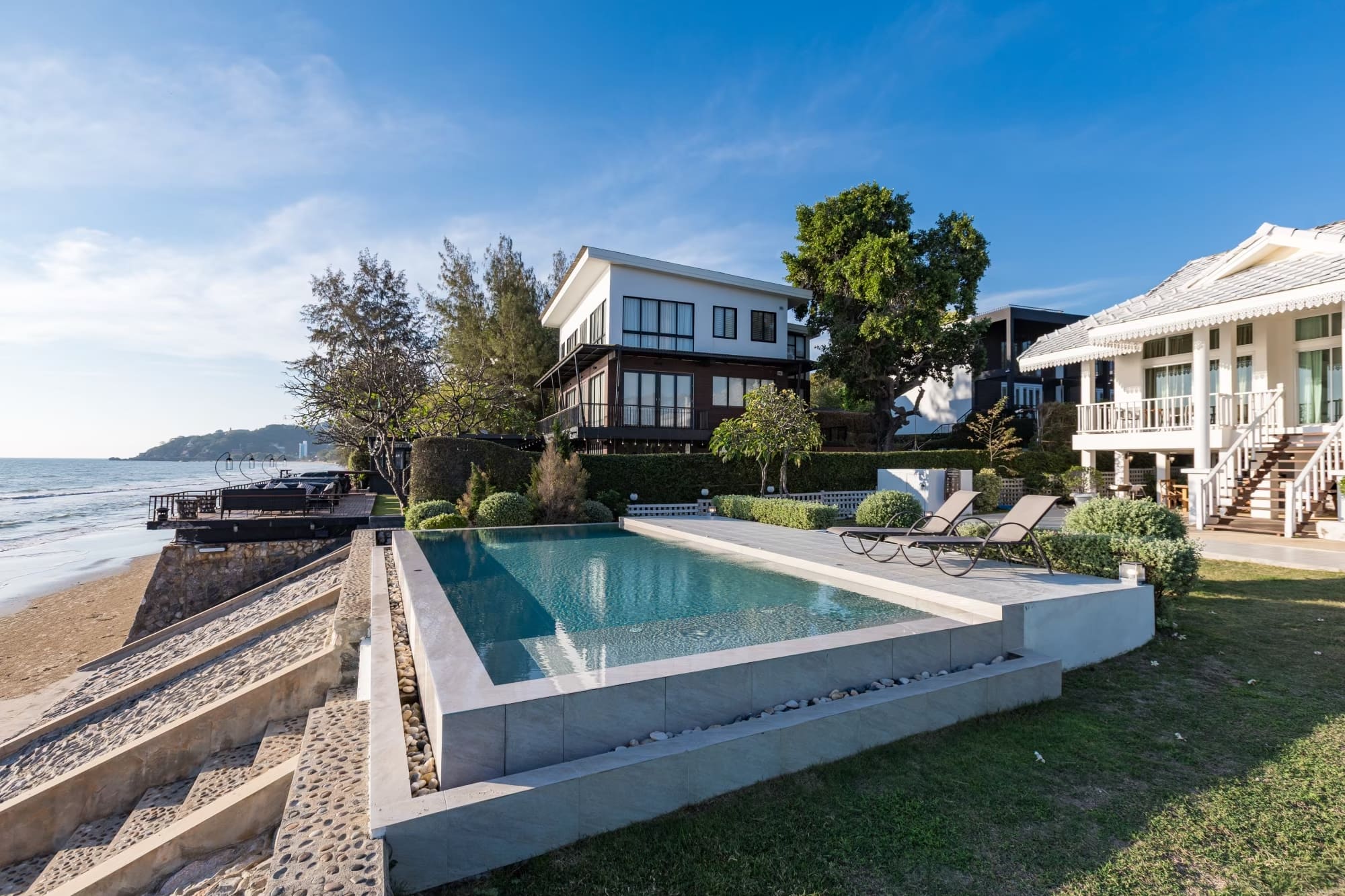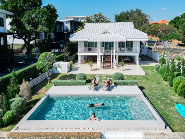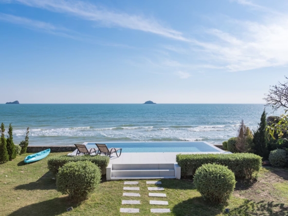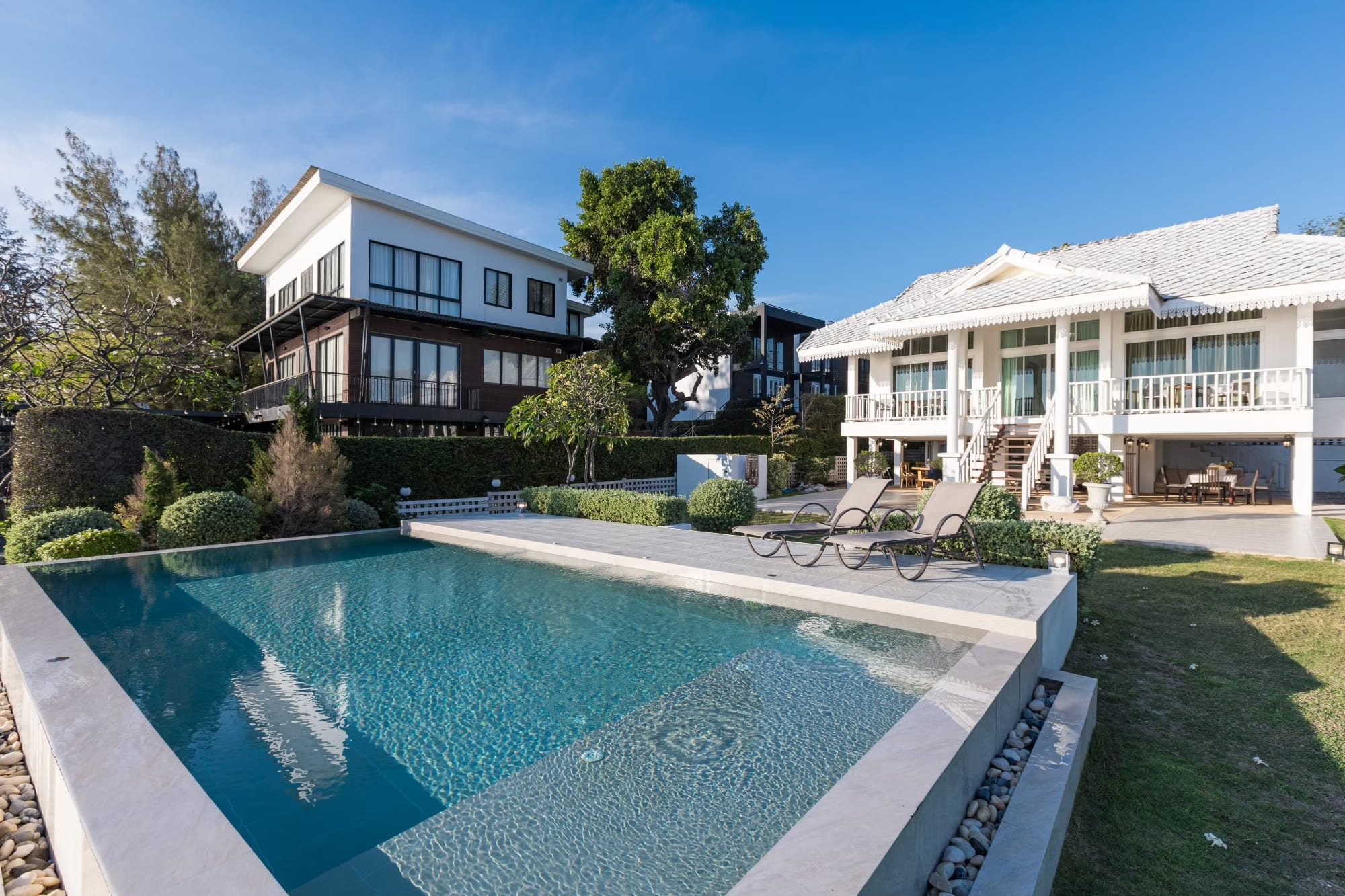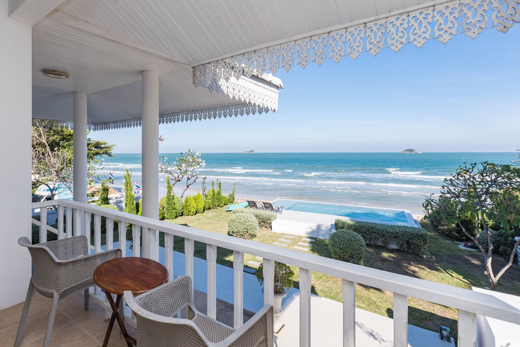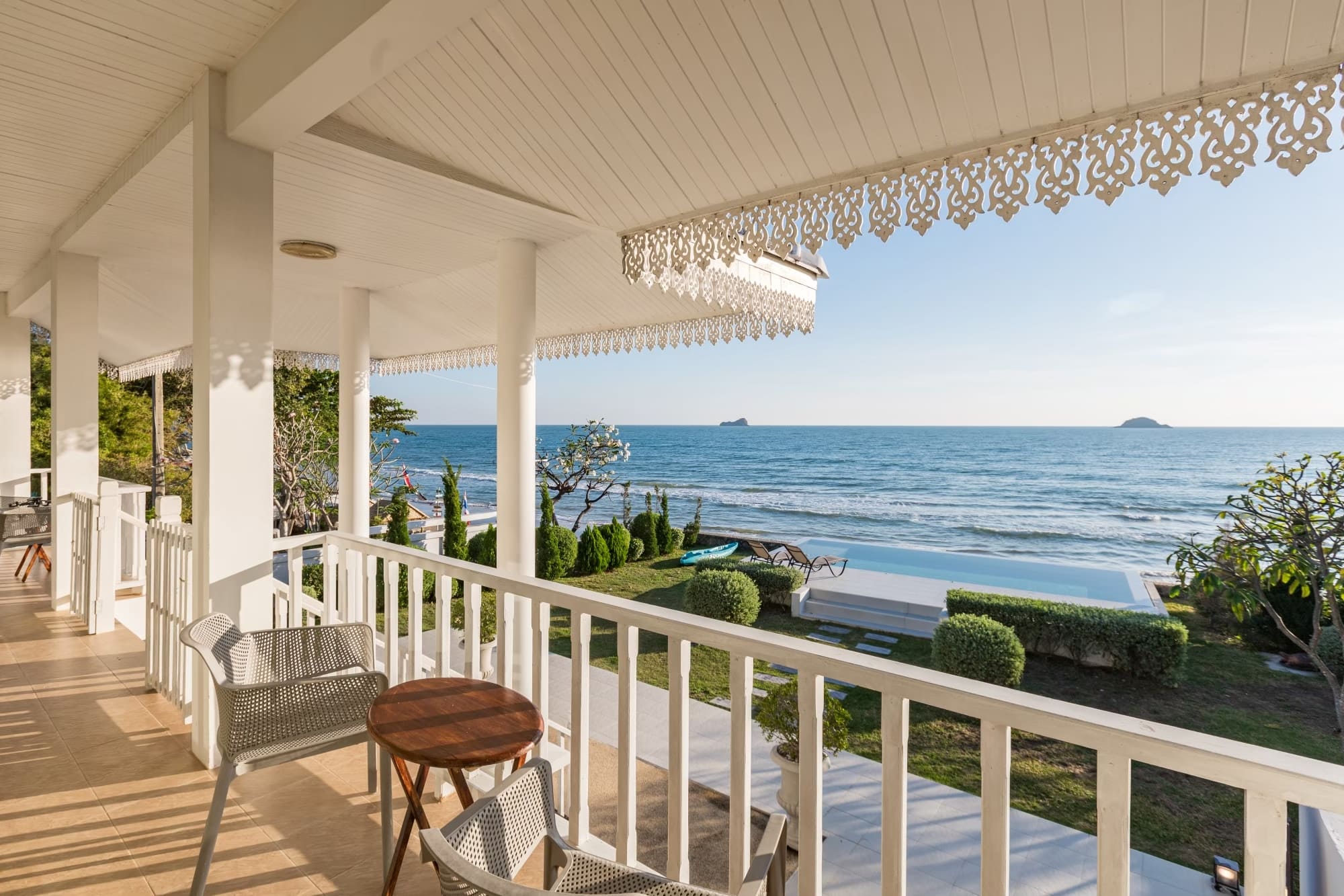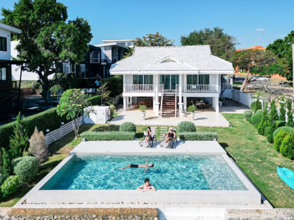 บ้านติดทะเลสไตร์โคโลเนียล พื้นที่สวนหน้าบ้านกว้างขวาง