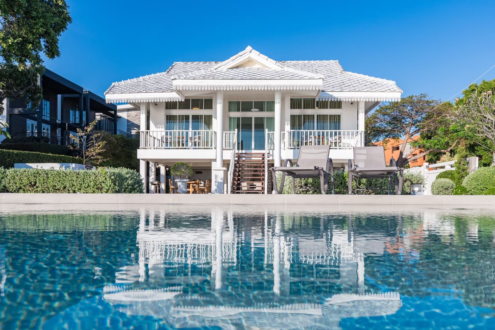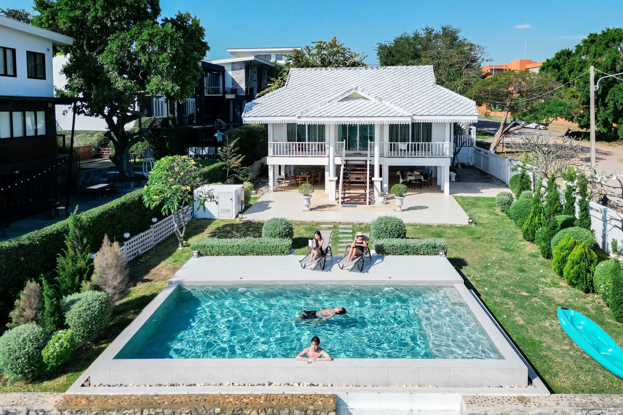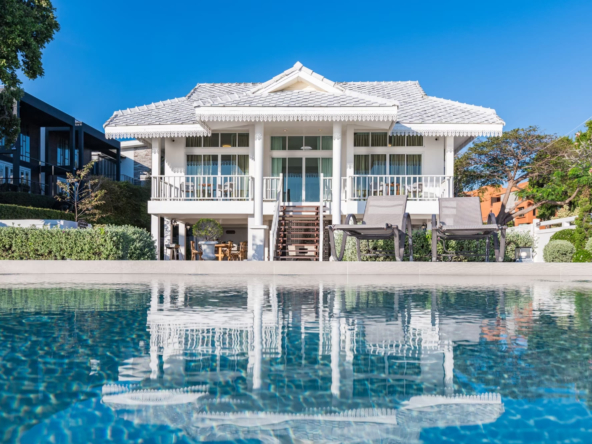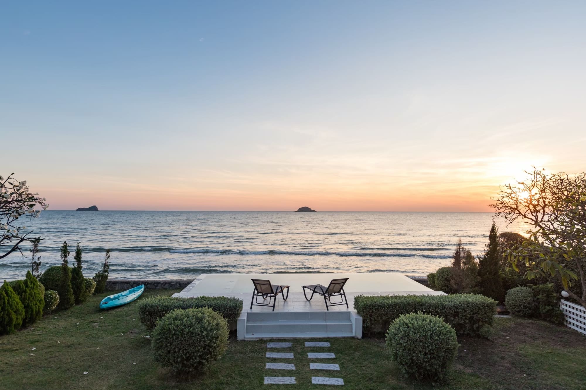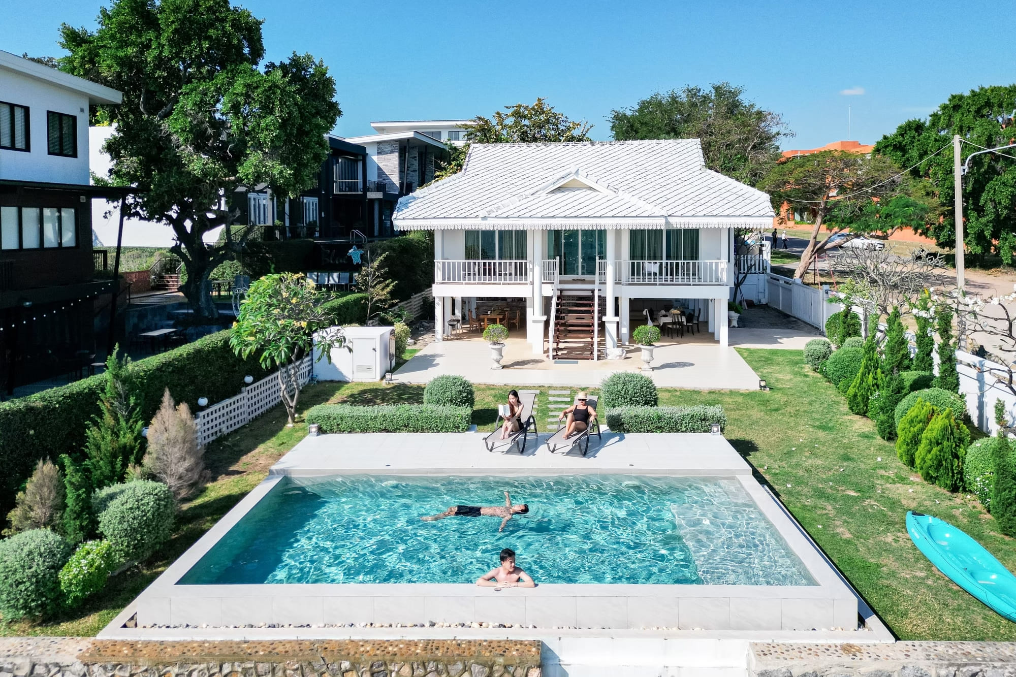 บ้านติดทะเลสไตร์โคโลเนียล พื้นที่สวนหน้าบ้านกว้างขวาง