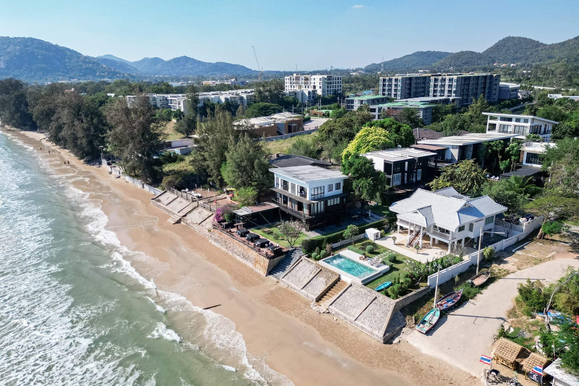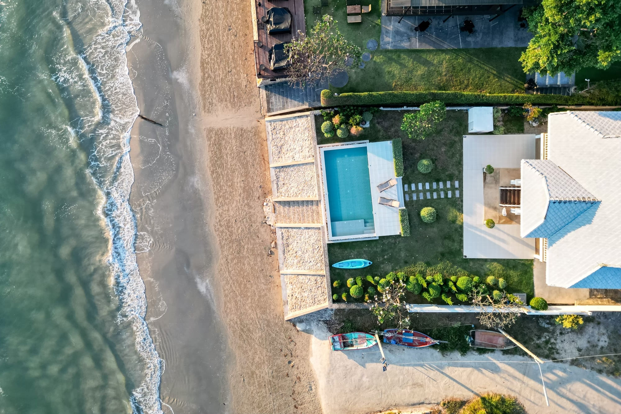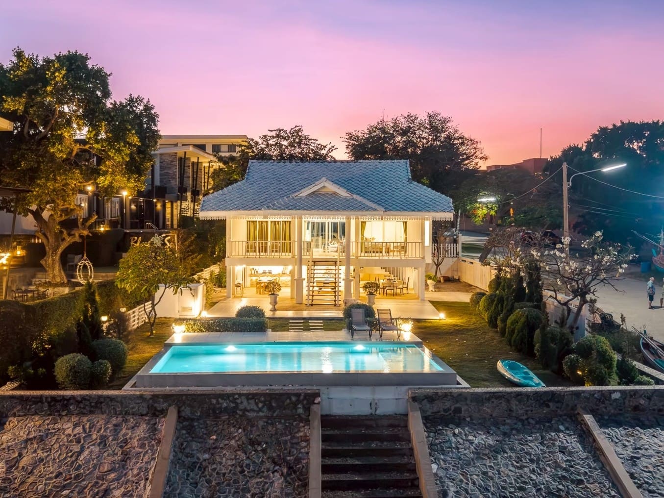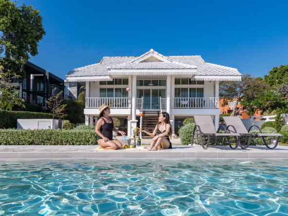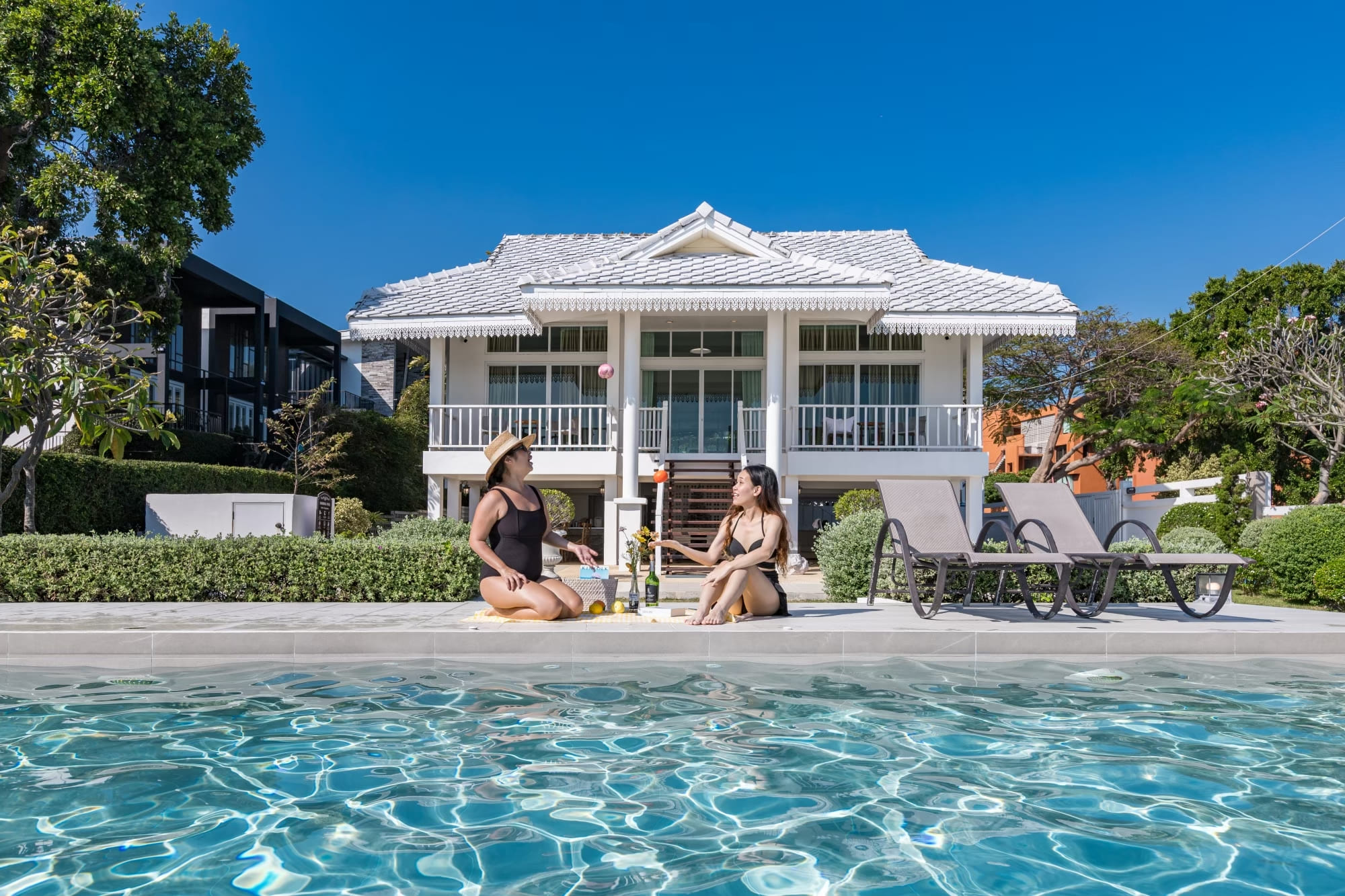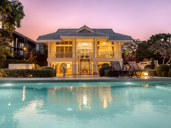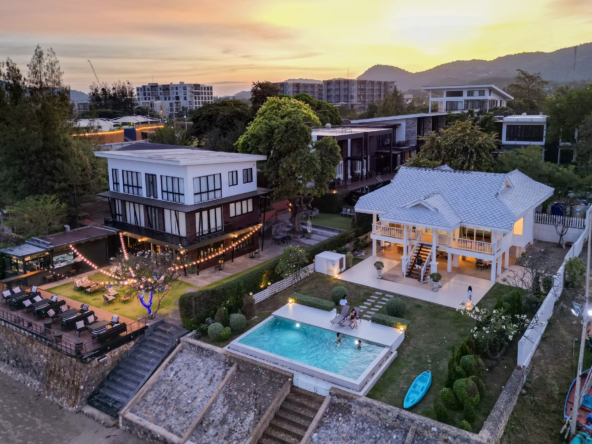 บ้านติดทะเลสไตร์โคโลเนียล พื้นที่สวนหน้าบ้านกว้างขวาง