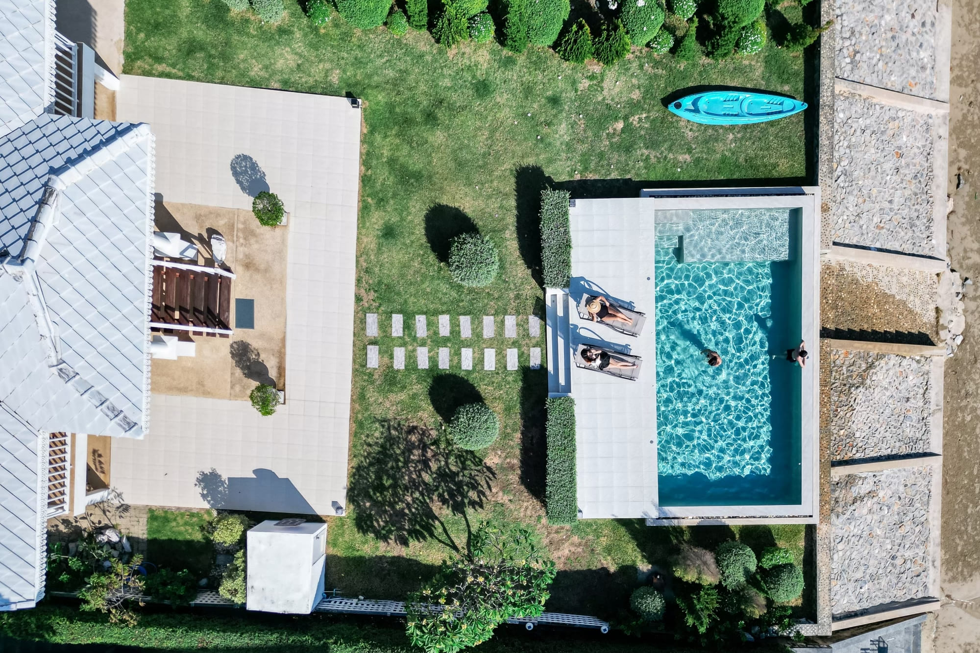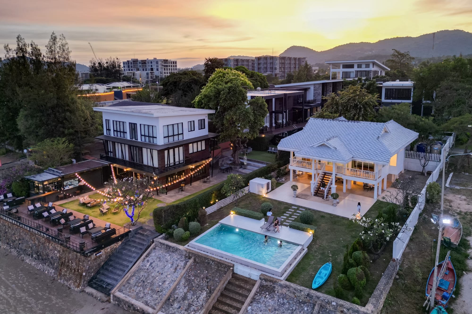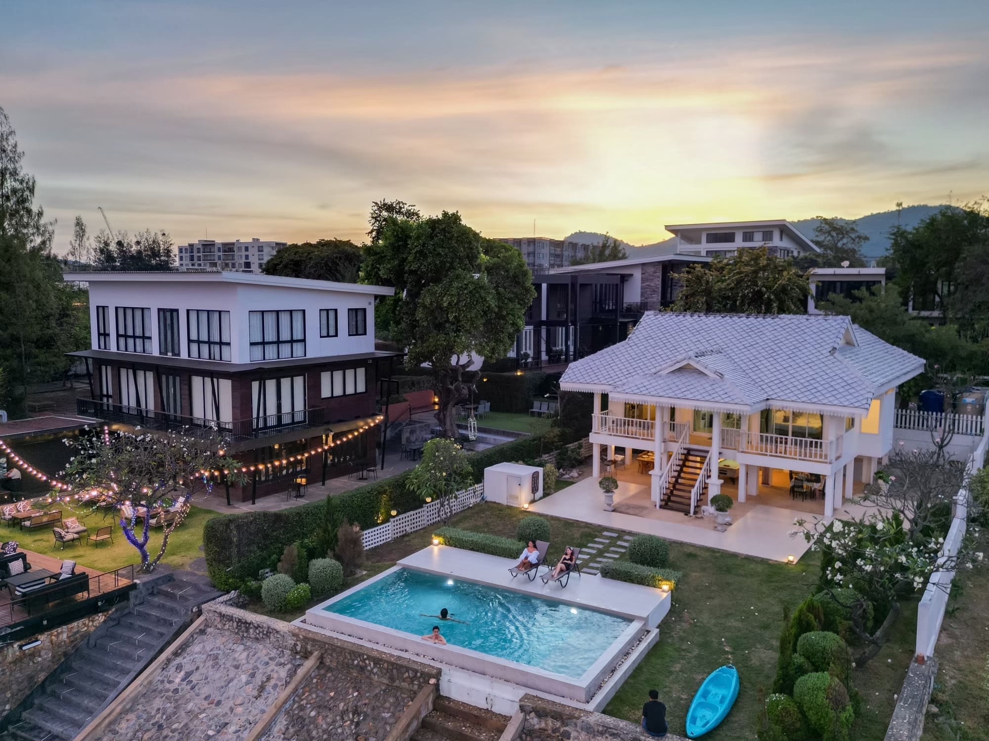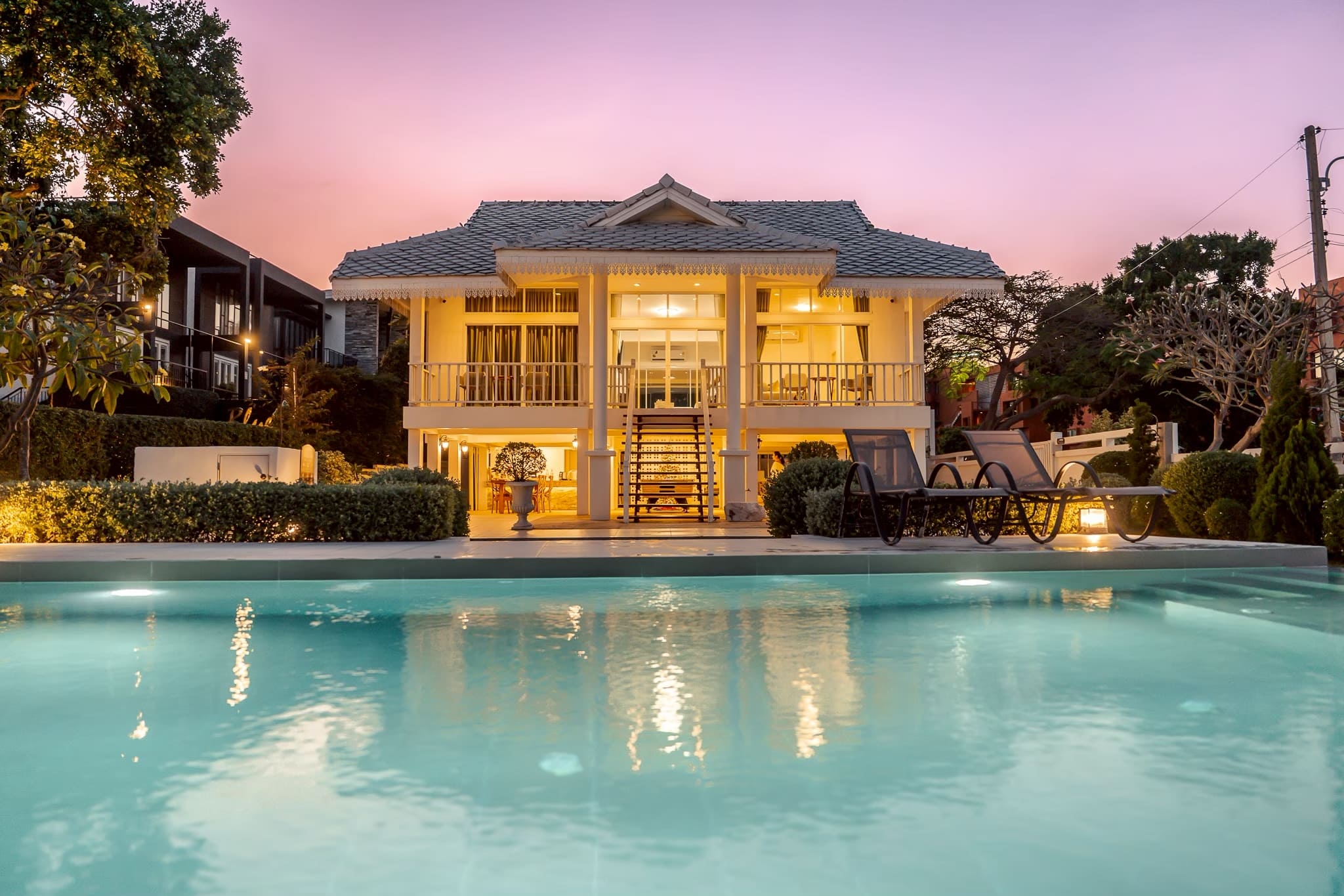 บ้านติดทะเลสไตร์โคโลเนียล พื้นที่สวนหน้าบ้านกว้างขวาง